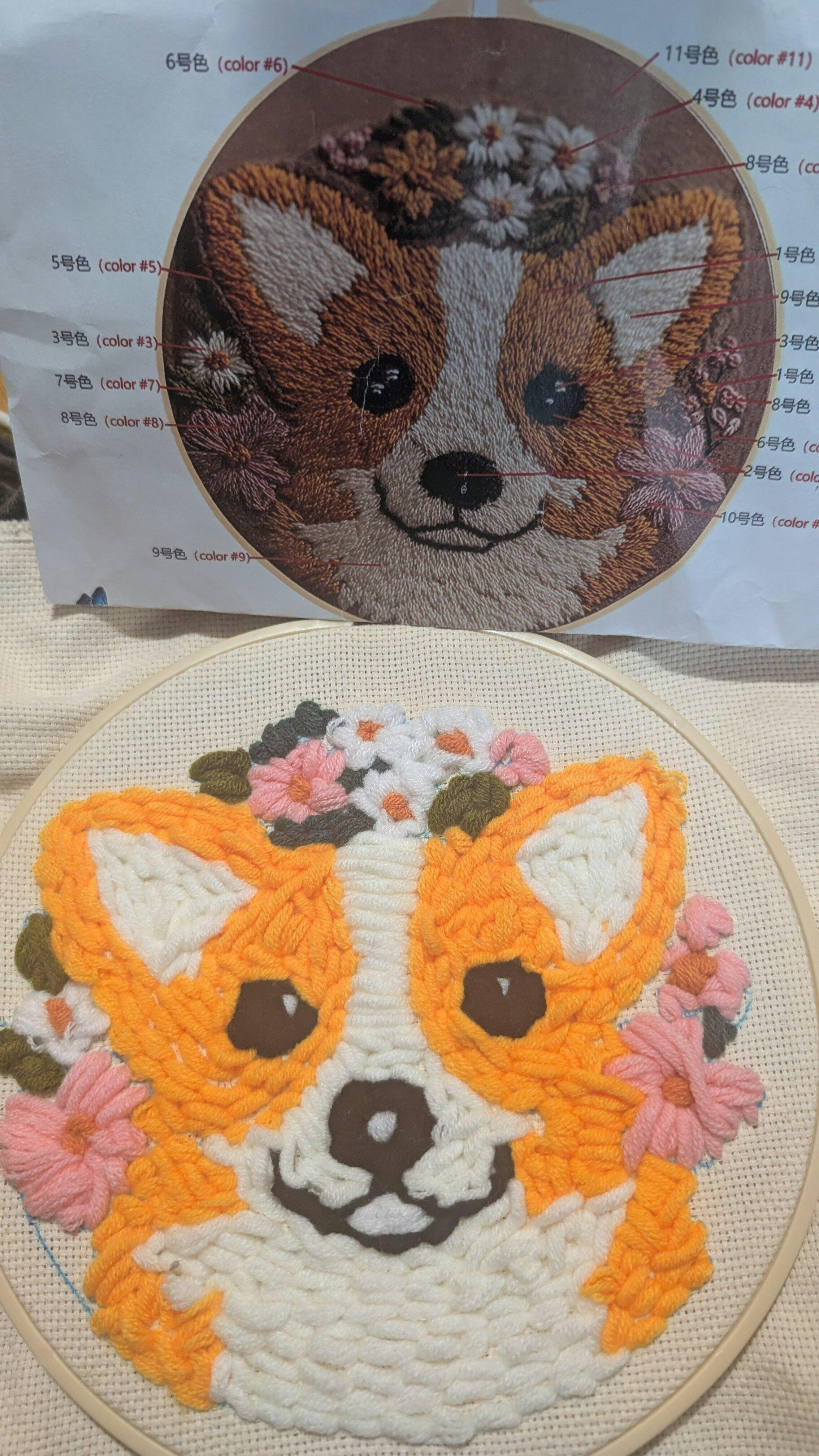 This is a DIY craft kit and the photos show a reference result. Because stitching technique, pressure, and density vary by person, your finished piece may reasonably differ from the photos. A visible inner fabric edge (not filled fully to the hoop) is normal and not a defect.
