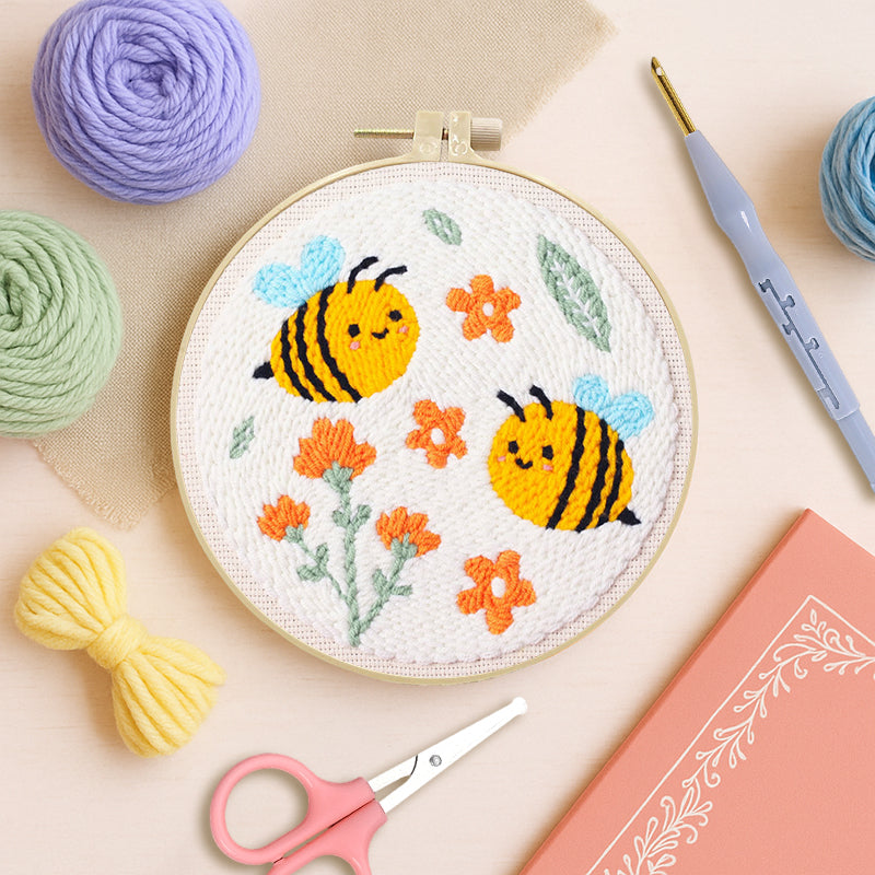 Punch needle is safe and fun for most ages. We recommend it for ages 8+ with supervision for younger crafters, as the needle has a sharp tip.