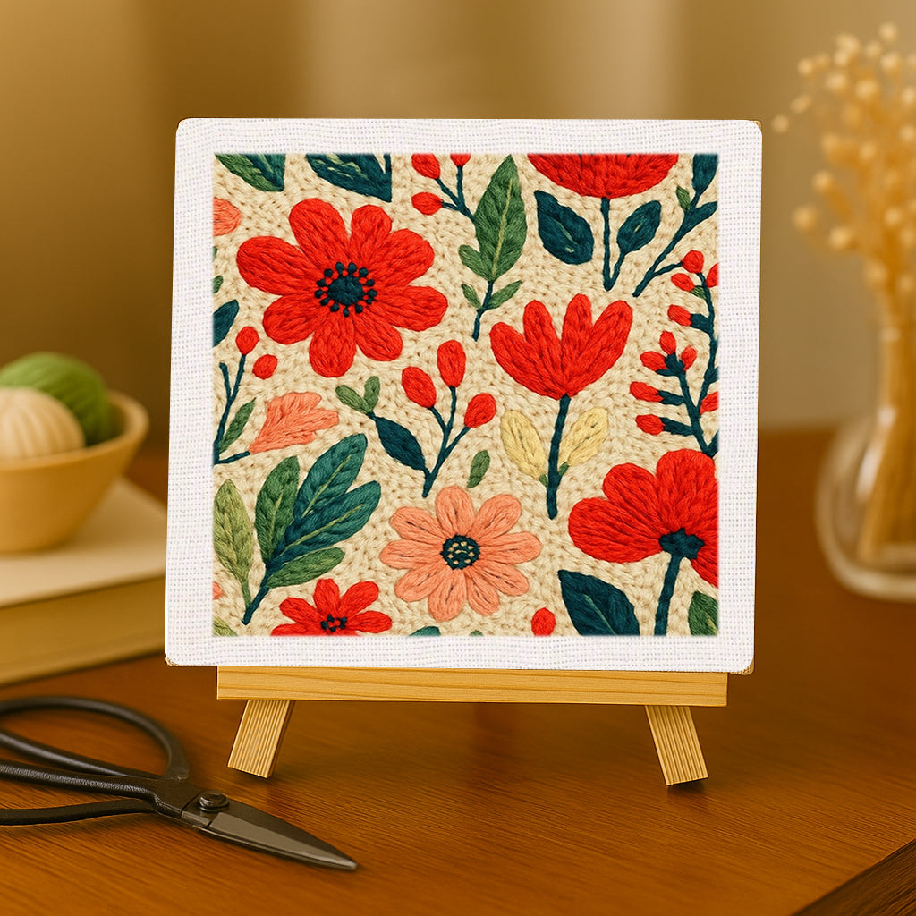 This is a DIY craft kit and the photos show a reference result. Because stitching technique, pressure, and density vary by person, your finished piece may reasonably differ from the photos. A visible inner fabric edge (not filled fully to the hoop) is normal and not a defect.