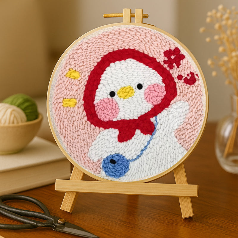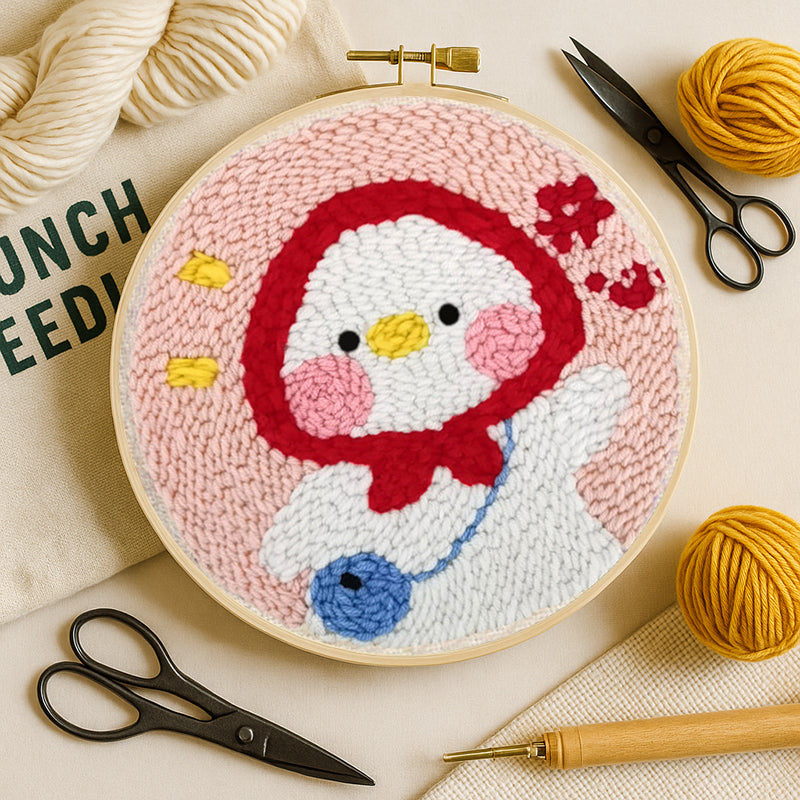 Punch needle is safe and fun for most ages. We recommend it for ages 8+ with supervision for younger crafters, as the needle has a sharp tip.