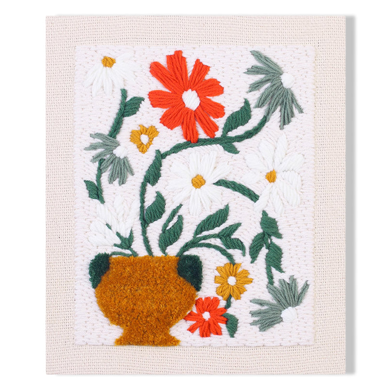 This is a DIY craft kit and the photos show a reference result. Because stitching technique, pressure, and density vary by person, your finished piece may reasonably differ from the photos. A visible inner fabric edge (not filled fully to the hoop) is normal and not a defect.