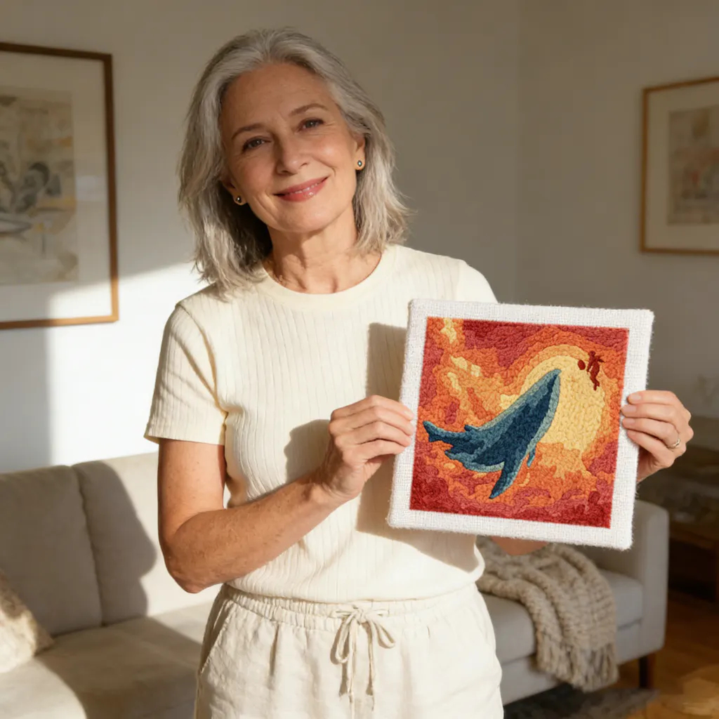 Our complete punch needle kit includes: 1x framed canvas with pre-printed design, 1x punch needle, 1x needle threading tool, 1x high-quality yarn, and 1x detailed guide— perfect for all skill levels!