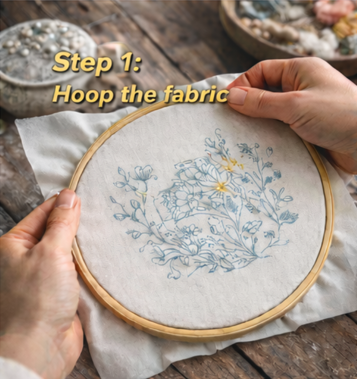 Step 1: Hoop the fabric