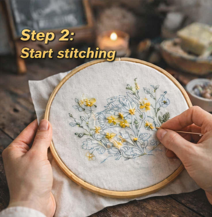 Not at all! Our embroidery kits are designed especially for beginners. Each kit includes pre-printed fabric, step-by-step instructions, and all the tools you need. Most beginners can get started confidently within the first 20–30 minutes.